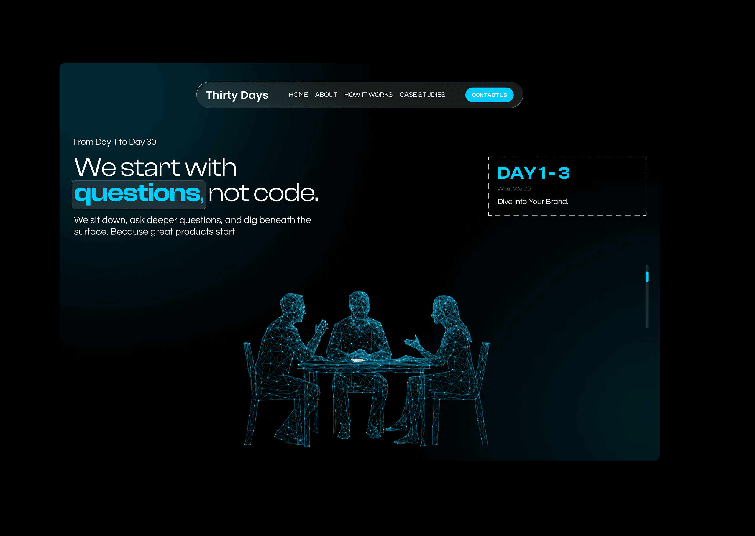 Thirty Days to MVP — A Cinematic, Scroll-Driven Storytelling Website Illustrating a 30-Day Product Launch Blueprint